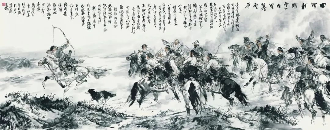 亚非一直是以中国人物画为主攻方向。毫无疑问,人物画是以人物形象为审美主体的,塑造感人的艺术形象来传达艺术家对生活对世界的评价,并以此寄托作者的情思和爱憎,这应该是人物画家研究的本体。基于这样的认知,亚非认为“造型是人物画的基础”,总是把人物造型训练放在首位而加以打磨。他的造型能力,一方面得益于他在安徽师范大学艺术系接受四年的“学院派教育”,打下了他对中西绘画理论和技巧的基础;另一方面,则是受益于他在20世纪80年代所进行的大量的连环画创作。画一本连环画有100多幅,要求一定时间内完成,这种“大运动量”创作对提高造型能力的好处,已是当代许多人物画大家如程十发、刘旦宅、范曾、刘国辉、冯远等人的经验之谈。