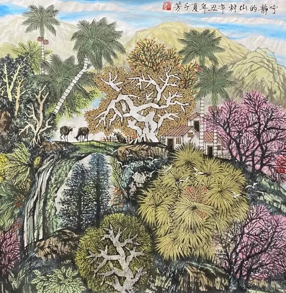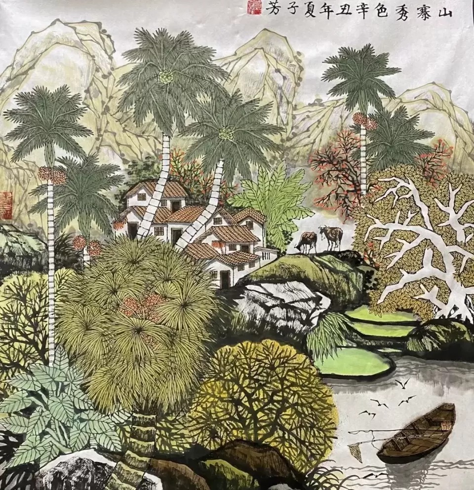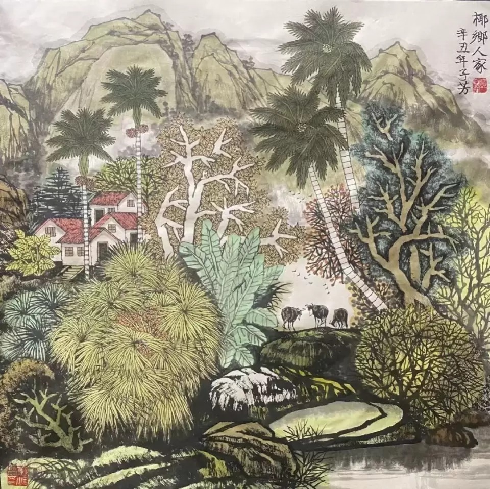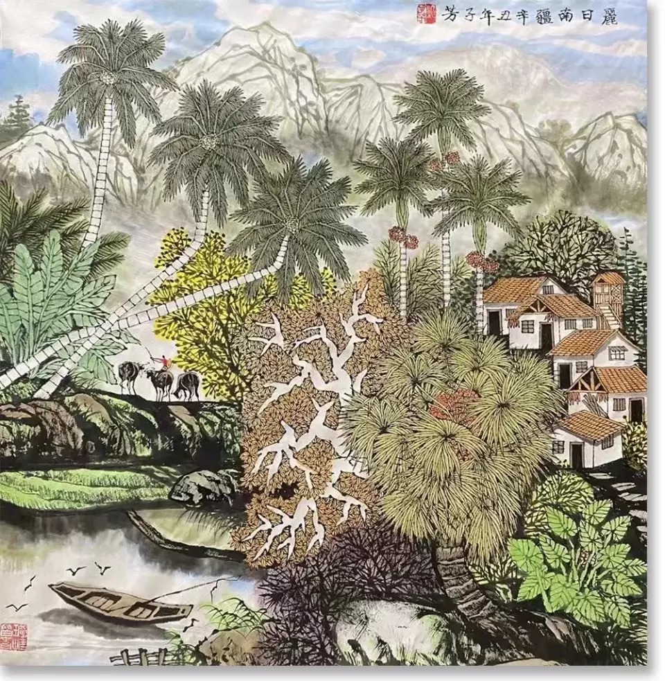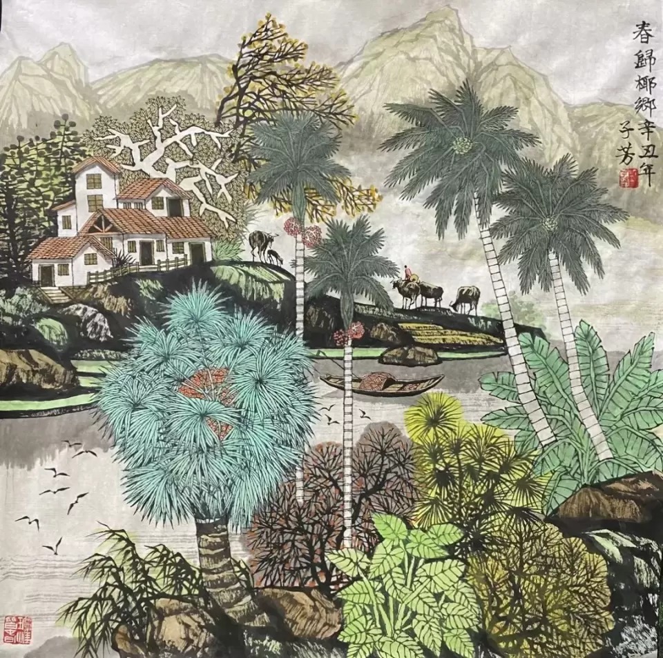 强调“活泼泼的”、强调"天地与我并生,而万物与我为一”,这是他绘画艺术的深层哲学。邓子芳的画面既是海南乡野真实的景观,更是他愿意呈现的一种充满诗意的视觉空间,他们丰满,丰富,彼此印证。