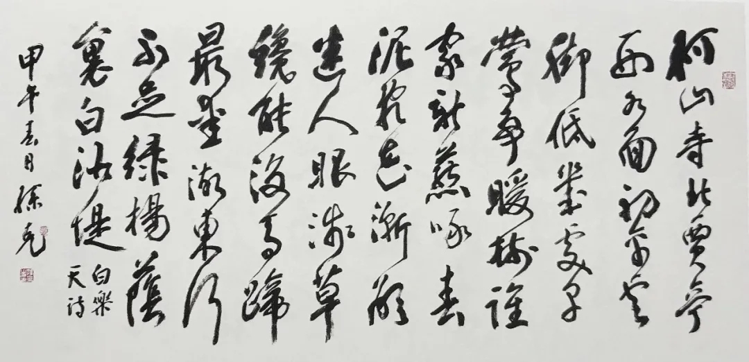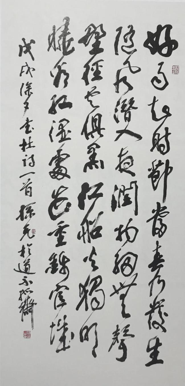 学习书法还要从楷书起手。书法讲究规范,筑牢根基。学画学书,都要有牢固的基础,譬如盖房子,没有坚实牢固的地基,建不起高楼。楷书就是书法的基础,楷书讲究结构间架的均衡、对称、协调,用笔的力度厚重而不浊滞、轻灵而不浮滑。行草的笔性虽然和楷书有异,但力度的要求还是相同的。以草书为例,虽然孙过庭说,草书以使转为形质,点画为性情,但点画是基础,不可忽略。观今人写草书多作狂草,大圈小圈信笔由之,全然不知节制。
